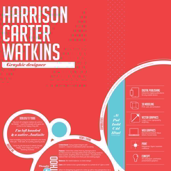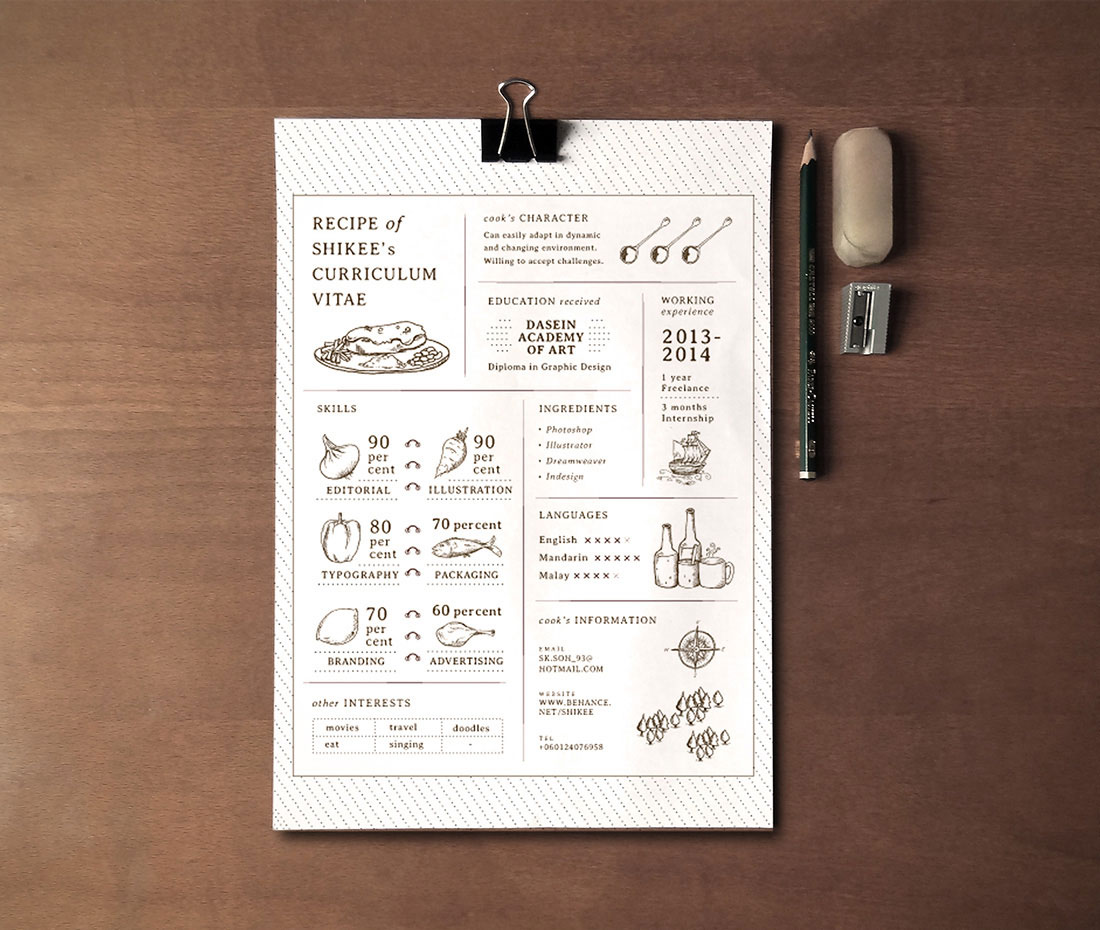 Learn how to design your resume so that it stands out with 11+ stellar examples. Check out these resume examples for inspiration. It`ll show your management skills. Your resume speaks volumes about you, notes v. 1) simple but detailed outline, perfectly structured. Whatever route you decide to go, it's always smart to. A creative resume or cv is one document you can't skip. When applying for a job or gaining a new client, the first impression you create is . This may seem like a lot of pressure, but getting the right format for a resume is easier than it seems at first. Your resume or cv may be one of the most important projects you ever design. Resumes are an important tool in any job search, and they can make or break you as a candidate. These days, particularly if you are creative, you need an outstanding resume to make an impression on potential employers. Create a free piktochart account and customize one of the design templates.